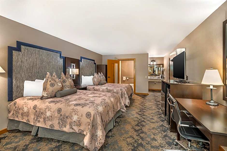 This accessible room features 2 queen beds and a roll-in shower with a shower chair. It is located in the garden area of the property including close access to the breakfast room, parking and pool area.